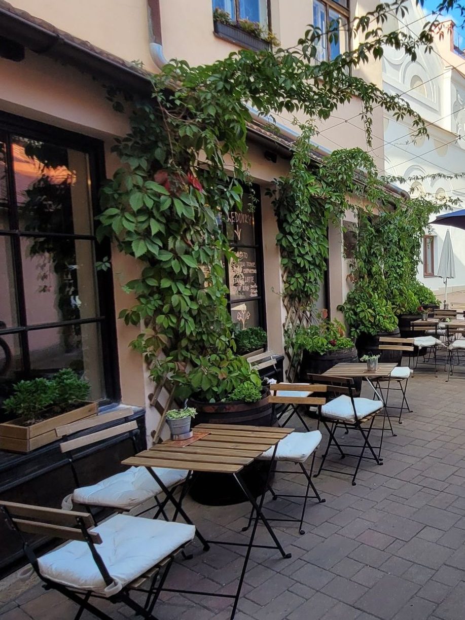 Malá útulná kavárna se zahrádkou. Výběrová káva a domácí dorty.